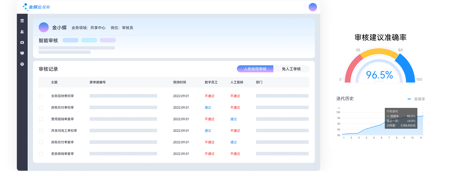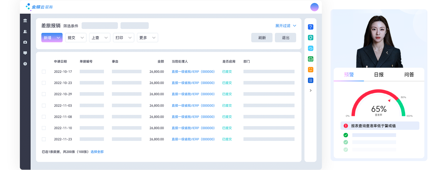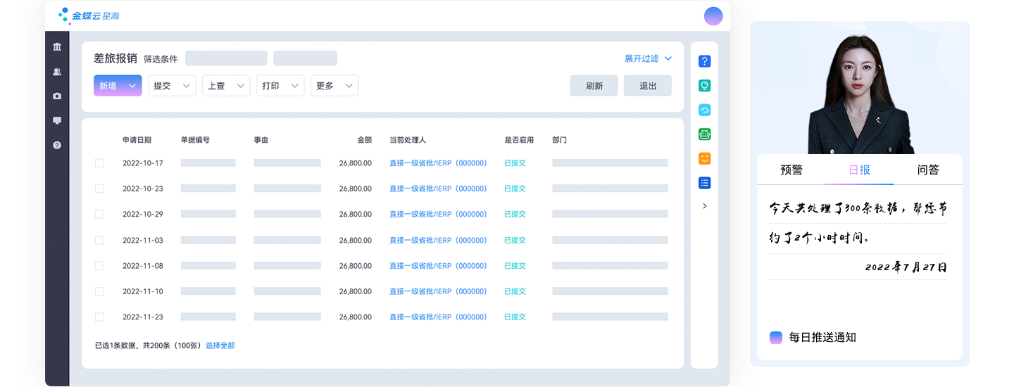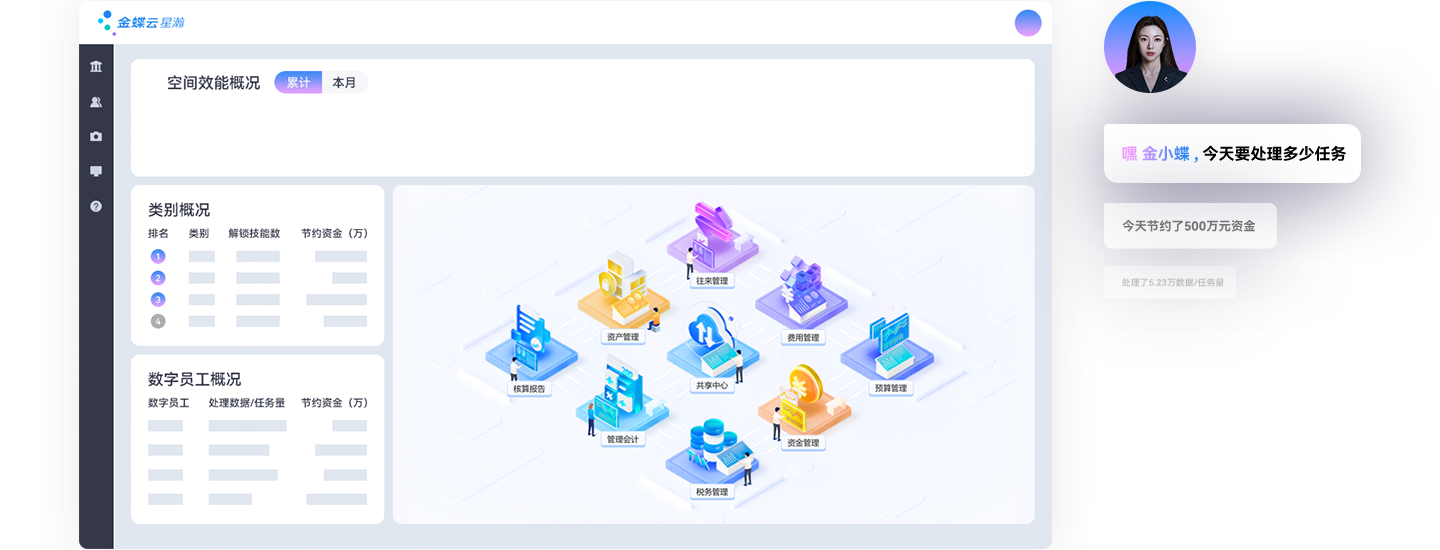 金蝶數字員工,企業級人工智能“小K”的全新智能化、人格化升級,可主動感知、主動交互,像“人”一樣成長。數字員工靈活可定制,形象聲音、工作范疇,100+預設技能隨需而動,交互、監督、訓練和管理,一個平臺實現。“人機”協同辦公,實現企業大規模自動化,數據驅動,降本增效