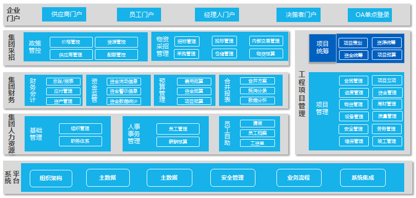建立浦東水務集團物資采招、工程項目管理、集團財務管控、集團人力資源管理四大板塊的統一門戶、一體化管理信息協同平臺,將集團的業務流、信息流、資金流三流合一,實現集團“集中管控、業務協同、運營規范、降本增效”的管理目標。