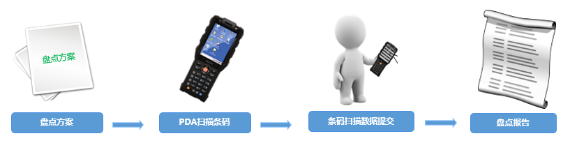 倉庫人員根據盤點方案,進行盤點準備。倉庫人員直接PDA掃描物料條碼進行倉庫盤點。確認掃描出貨數據無誤后,直接系統提交生成“盤點報告”。