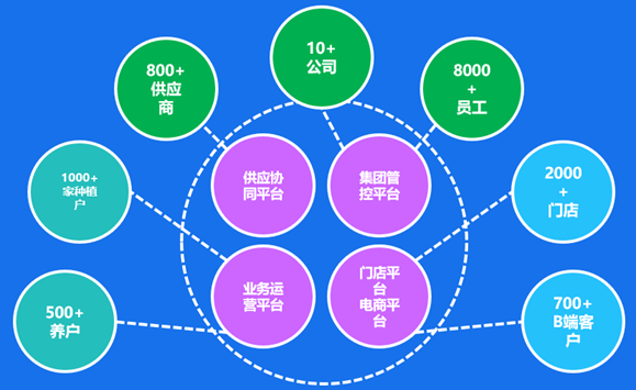 湘佳牧業禽養殖產業鏈數字化平臺,通過與門店系統連接,實現鏈接2000+門店;通過與電商系統連接,實現鏈接700+B端客戶;通過與ISV養戶移動應用連接,實現鏈接500+農戶;正在實施通過與供應商平臺連接,實現鏈接500+供應商。生態協同能力,成為支撐湘佳牧業穩居區域龍頭,沖擊全國市場的核心競爭能力。