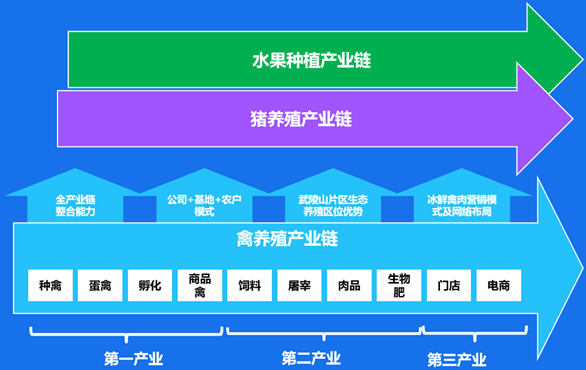 湘佳牧業禽養殖產業鏈數字化平臺,支撐企業復制全產業鏈整合能力、公司+基地+農戶模式、武陵山片區生態養殖區位優勢、冰鮮禽肉營銷模式及網絡布局,強勢切入豬養殖、水果種植板塊,貫穿現代農業3大產業5大品類。