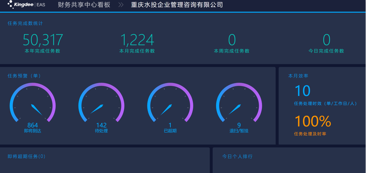 通過財務共享運營監控平臺,不僅能及時呈現財務共享中心各組織、人員的任務完成率、組織個人等信息,更可通過財務共享運營平臺,實現任務處理時效性的統計,便于內部進行績效考核和工作獎金分配。