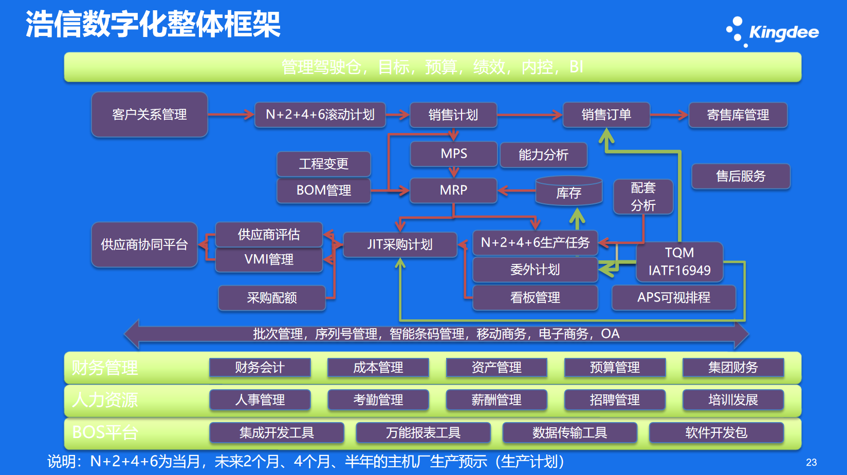 通過運營管理與生產業務的縱向打通,上下游合作伙伴業務的橫向集成,利用云之家、金蝶云星空、SRM等系統完成浩信與員工、浩信與供應商、浩信與客戶的互利共生平臺,達到將本增效、合作共贏的目的。