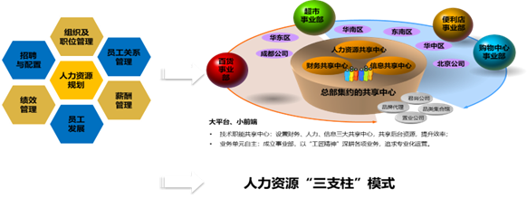 因此,經過多方考察和深入研究,天虹數科發現基于共享思維構建的資源共享化、服務產品化、平臺數字化的新型人力資源管理模式可以有效解決公司人力資源管理面臨的難題,而解決這些問題的關鍵舉措,則是推動人力資源管理“三支柱”運營模式轉型,同時構建能支撐該模式的人力數字化共享服務運行平臺。