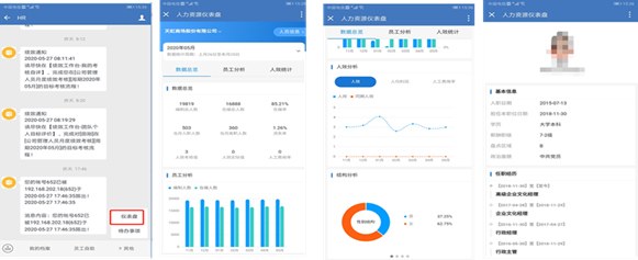 天虹數科業務遍及全國,管理層出差頻繁。之前想要實時獲取人力資源相關管理指標和數據很不便捷。一方面需要讓HR搜集整理,不及時;另一方面需要隨身攜帶電腦才能接收,不方便。