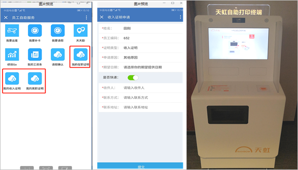 天虹數科基于金蝶s-HR對人力服務不斷升級,在管理中融入智能手機移動應用、智能人事服務終端機等服務設施設備,深深將用戶思維融入到人力服務業務的每個步驟,把內部的員工當成客戶,以客戶視角和極致體驗去規劃員工服務業務的每個場景。比如,通過電腦PC自助端、手機移動自助端、智能人事服務終端機等多端服務入口,員工可以完成個人檔案信息在線變更、勞動合同的電子簽署、在職或收入證明的在線開具、提交人事業務申請等等,讓員工可以隨時了解和享受他們關心和重視的個人HR服務,減少咨詢和跑腿時間,盡可能讓員工以最佳狀態為公司創造業務價值。