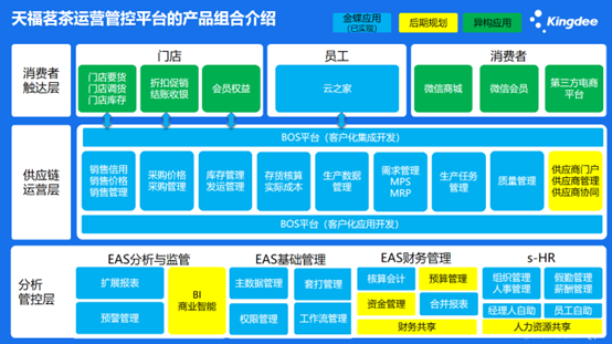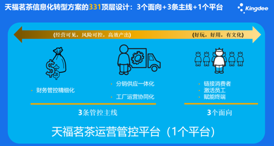 但在轉型之路上,工廠+銷售總/分公司+門店,業務鏈條長,要求信息傳遞及時、財務核算準確、商品流通順暢;茶葉、茶食,需要滿足法律法規對于原料、生產、流通環節的追溯和食品安全監管要求等情況。現階段各業務板塊沒有整體統一的運營管控平臺,給集團加強縱向業務管控和橫向業務協同提出了新的挑戰。